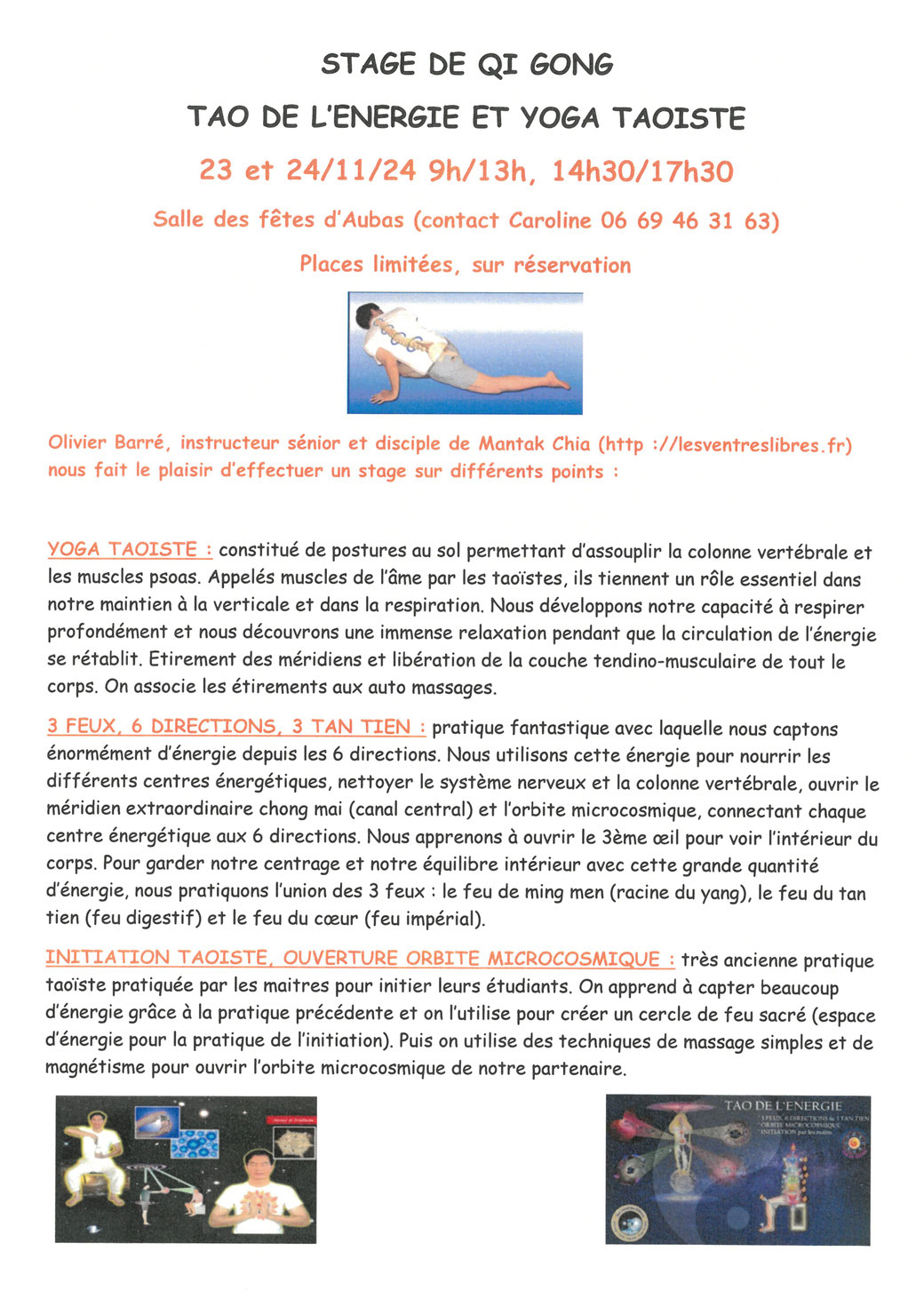 Si vous souhaitez en savoir plus, vous pouvez me contacter au 06 69 46 31 63, l'association propose également des massages et des randonnées/qi gong.